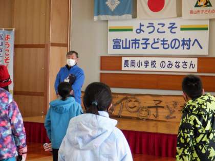 「富山市子どもの村」に到着。所の方に元気よく「よろしくお願いします!」