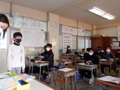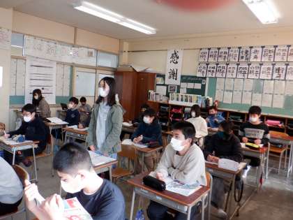 授業がスタート。日時、天気、気分等を尋ねたり、答えたりすることは、みんな慣れたものです。