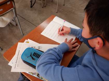 中学校での英語に備えて、書く学習も行っています。アルファベットはバッチリです。