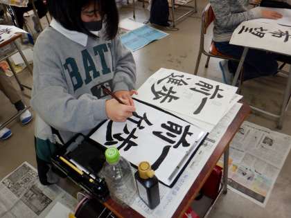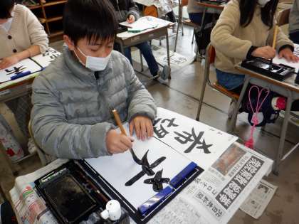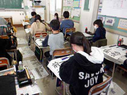 卒業式、入学式のお祝い掲示用の作品を書きました。