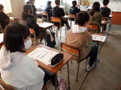 昨年度の卒業式を撮影した動画を観ながら、式の流れや自分たちの動きを確認しました。