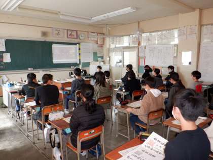 昨年度の卒業式を撮影した動画を観ながら、式の流れや自分たちの動きを確認しました。