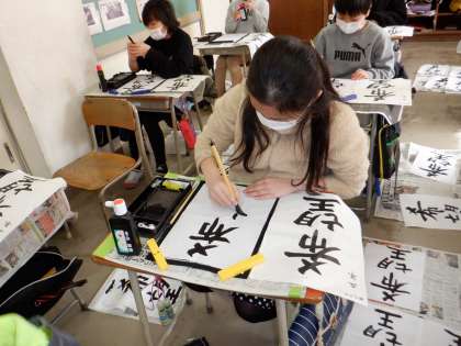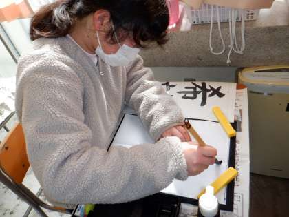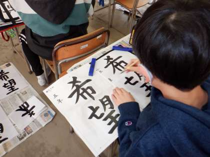 間違えやすい「希」の筆順や、画と画とのつながりに気を配りながら、「希望」と揮毫しました。