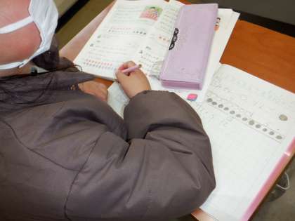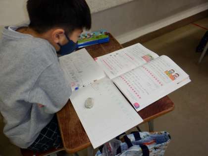 図を使って文章題を解決しています。ノートに自分の考えをまとめる姿から、この一年間の成長が感じられます。