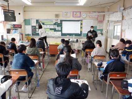 今日の学習は、中学校へ行ったら何部に入りたいか、将来どのような職業に就きたいかを伝え合うという内容です。