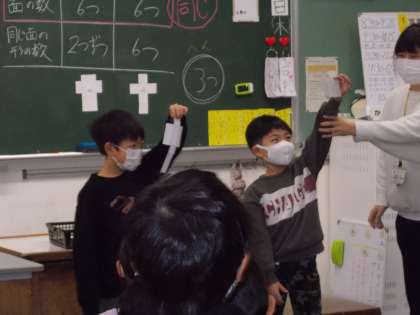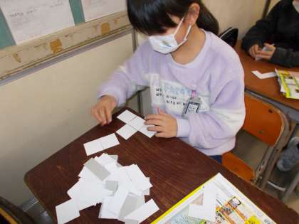 自由に作る中で、同じ形の箱であっても、面のつなぎ方が一通りではないことを発見しました。