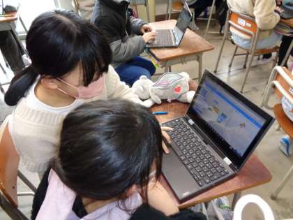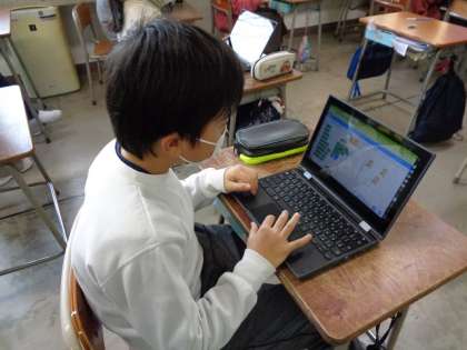 ICTの講師を招いて、プログラミング学習をしました。クロムブックのスクラッチを使って指示を出し、正多角形をかきました。正確な指示を出すと、思った通りの図形がかけることに驚きと、喜びを感じていました。