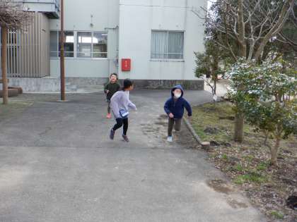 雪が溶けたグラウンドや中庭では、大勢の子供たちが遊んでいました。