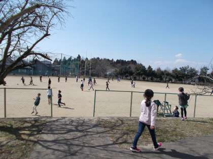 いつもに増して賑わうグラウンドの様子です。外遊びが大好きな長岡っ子たち。のびのびと育っています。