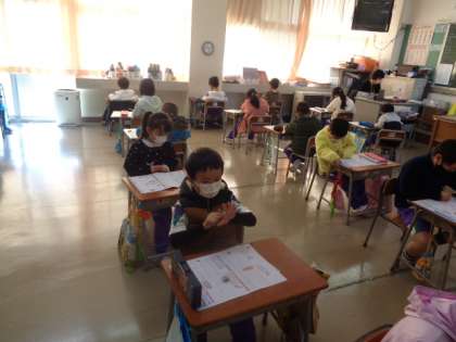 テストに取り組む1年生。集中して取り組める時間も格段に長くなりました!こんなところにも大きな成長が現れます。