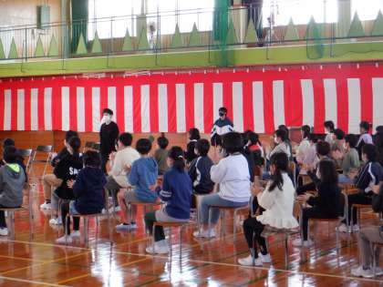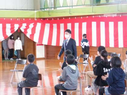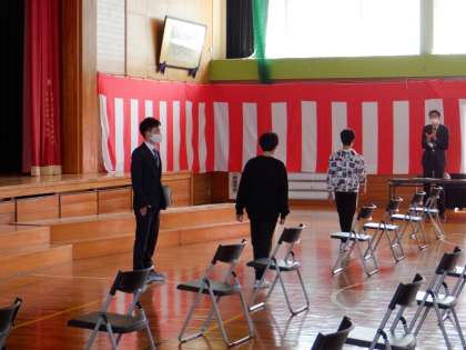 卒業生入場。在校生は、大きな拍手で迎えました。