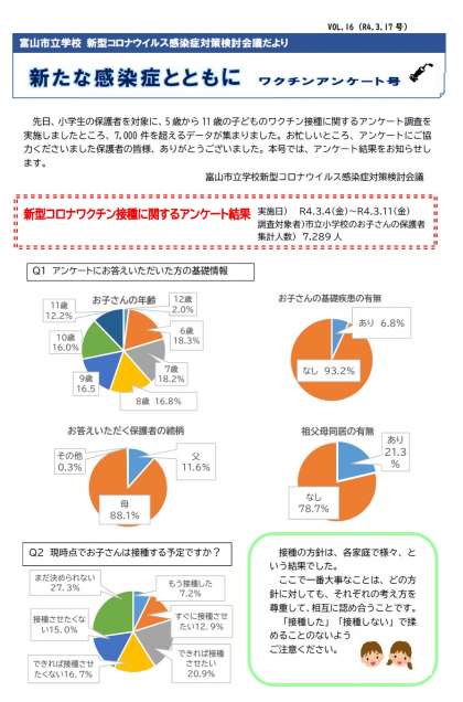 富山市教育委員会より、「新型コロナウイルス感染症対策検討会議だよりVoL.16」が届きました。印刷したものは明日配付します。データは右の「配布文書」欄に掲載します。ご確認ください。
