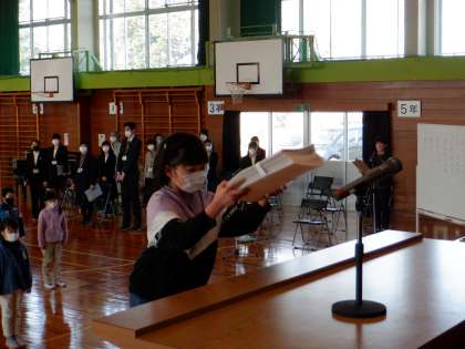 校長先生が「あゆみ」の意味について話をされると、子供たちは「なるほど。」という顔で真剣に耳を傾けていました。