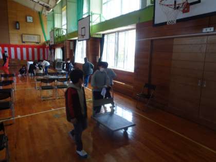 高学年児童が明日の入学式に備えて、様々な環境整備に励んでいます。