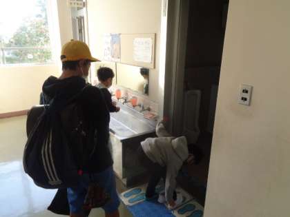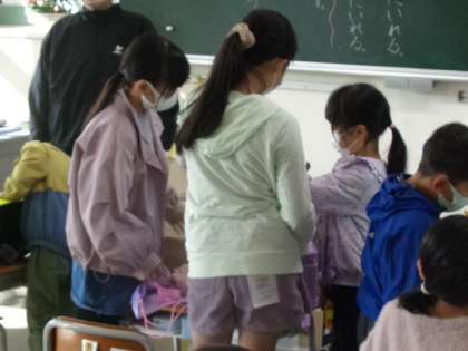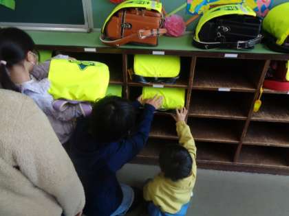 登校した1年生を優しく案内する姿です。眼差しや姿勢や向きにその子供なりの思いやりが現れていますね。