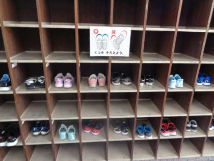 外履きのそろえ方も立派です。おそらく6年生のサポートも効いているのでしょう。