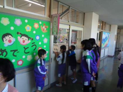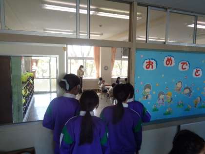 たくさんの上級生が休み時間に1年生と遊ぼうと、待機していました。