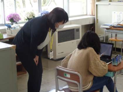 担任の先生とデジタルドリルの使い方を確認しました。昨年に引き続きの使用となるので、今日は先生役と児童役が入れ替わっています。大切なところはしっかり言葉にして伝えることができました。