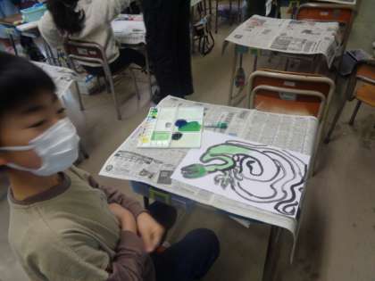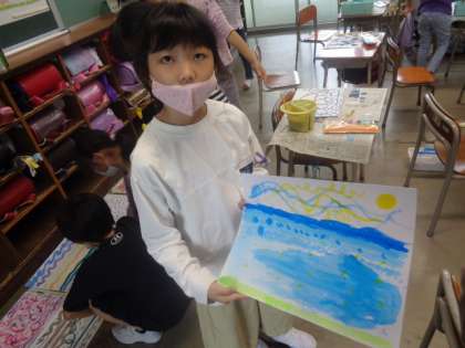 4月13日(水)3年生 絵の具+水+筆=いいかんじ