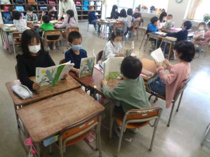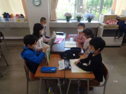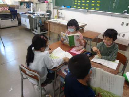 「ふきのとう」の情景が表れるように、役割を決めて音読練習をしています。