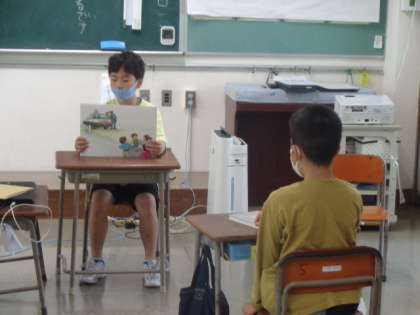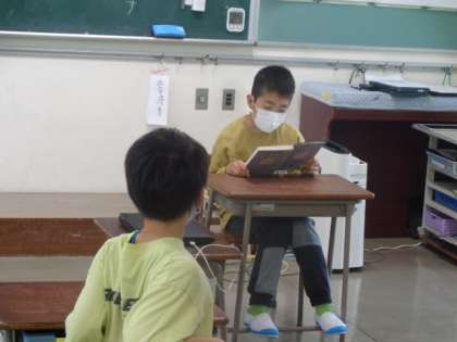 交替で、自分で選んだ本の読み聞かせに取り組んでいます。