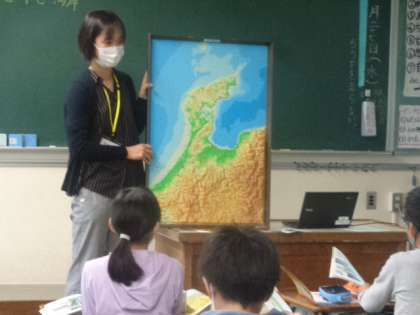 社会科で、日本という国の様々な特徴をとらえていく4年生。今日は地勢図の見方を学びました。GoogleEarthで、長岡近辺からアジア大陸全体までを見たり、凸凹が表現されている地図で確かめたりして理解を深めました。