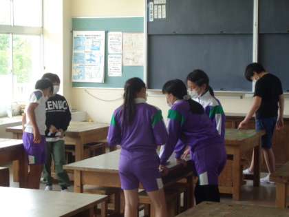 3時間目に行われる運動会結団式に向けて、各団ごとに入念に打ち合わせが行われていました。