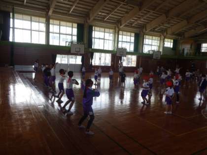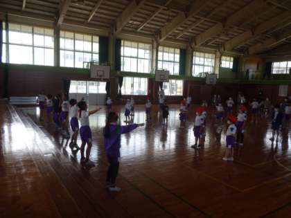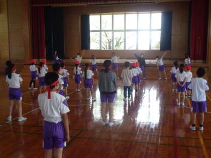 団役員が恥ずかしがらずに堂々とパフォーマンスのお手本を披露しています。
