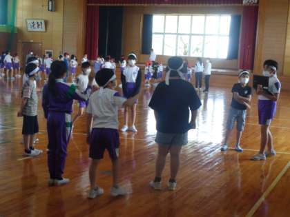 全体での練習のあとは、学年別の小集団で練習を行うなどの工夫を加えていました。