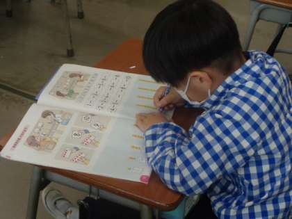 算数の時間です。2つの数字の大きさを比べて、大きさに違いがあることをたしかめて、小さい順に並べて書く活動に取り組んでいました。「ていねい」かつ「ととのった」字で書くよさを身に付けている子が多いことが分かりました。
