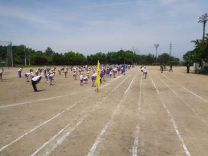 運動会の全体練習を実施しました。来週末まで3回、30分以内で要点を絞って行います。今日はEXダンスの練習。原則、運動に際しては2mの間隔を取り、マスクを外して実施します。ここでは感染予防より熱中症予防を優先していきます。
