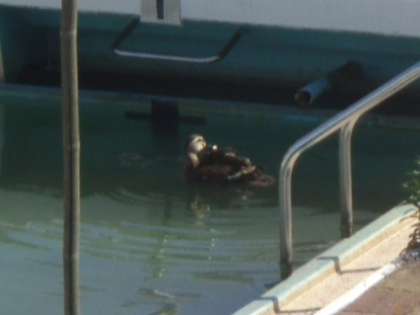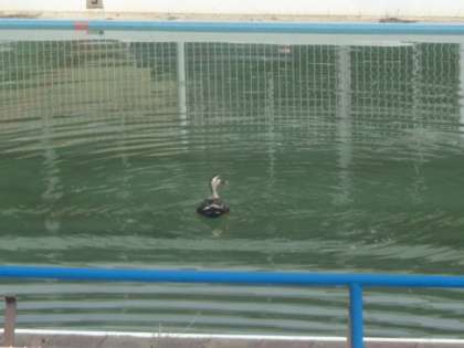 ここ数日、9時頃になると、学校プールに可愛いお客さんが欠かさずやってきます。マガモです。30分ぐらい羽根休めをして、また飛び立っていきます。授業中のことなので、子供たちは来訪に気付いてはいないと思われます。