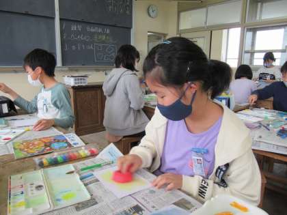 「うれしい」「楽しい」「悲しい」「こわい」「びっくり」「ドキドキ」「わくわく」「きんちょう」「おこっている」・・・いろいろな気持ちを水彩を使って表現しました。