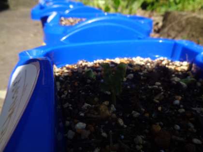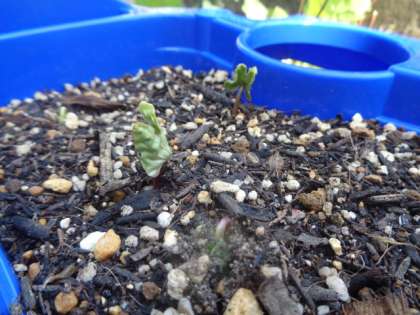 アサガオが発芽し、双葉が開こうとするのを、