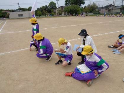 運動会当日のスムーズな係活動をイメージしながら、記録の集計をしたり、出発合図のタイミングを計ったりしました。