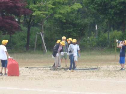 6時間目。5,6年生が明日の運動会の会場準備に力を貸してくれました。
