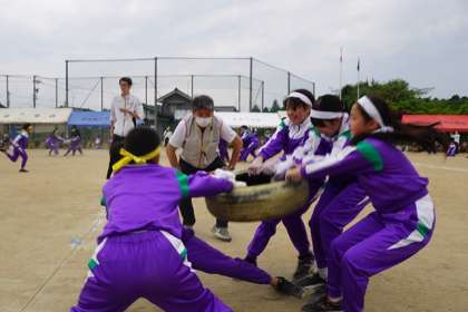5,6年生 団体競技 タイヤ引きの様子です。