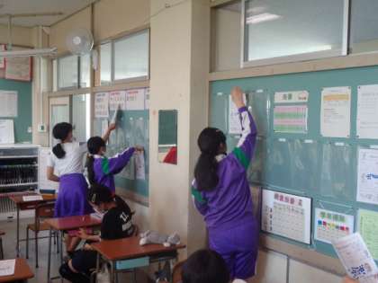 運動会の1日とそれに至るまでの経過で多くのことを学んだ6年生。今日はさっそく、多面的な視点からの自己評価に取り組んでいました。