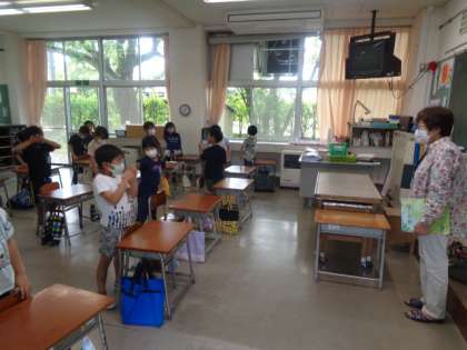 今日は1,2年生に読み聞かせていただきました。しっかりお礼のあいさつをしています。