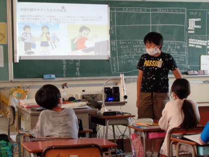 日本と関わりの深い国調べをした発表会をしました。発表を聞きながら、みんなで日本との似たところ、違うところを確認しながら、国際理解を図っています。