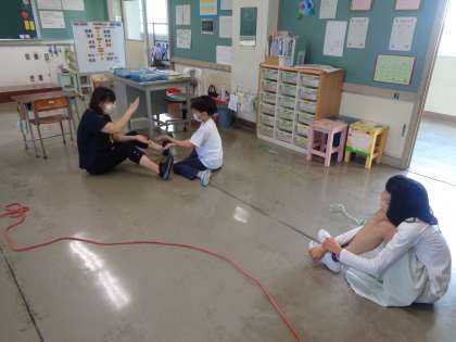 茶摘みの手遊びの練習を指定います。音楽と動作を合わせるのがなかなか難しいのです。でも、上手になってくると、相手と合わせるのが楽しくなってきます。