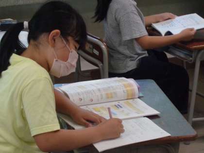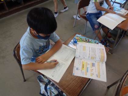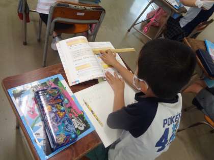 竹物差しを正しく使い、長さをていねいに測っています。この学習が、様々な単元の基礎となります。