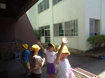 今日も夏日です。 ミストシャワーで少し体を冷やして、さあ、3時間目の学習へ!