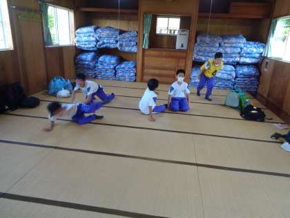子供たちは午後の活動も終え、現在部屋でのんびり過ごしています。健康観察の結果も全員異常なし。元気です。