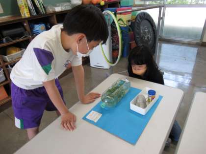 あおぞら級でメダカを育てています。ペットボトルの水槽に慣れてきたのか、えさをよく食べるようになってきました。えさをあげすぎて、水槽の水質が汚れないように気を付けながら世話をしています。メダカの卵が生まれるのを楽しみにしています。