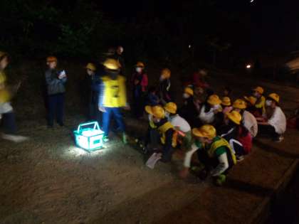 班で協力して夜道をハイキングしました。