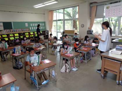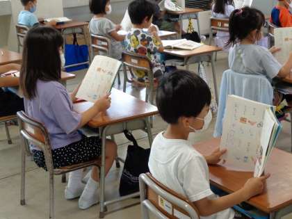 声の出し方や教科書の持ち方、姿勢に気を付けて音読しています。