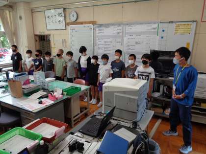 富山市小学生陸上競技交流大会に参加した長岡っ子の選手達が、職員室へやってきました。大会までの応援やサポート、当日の陣中見舞い等に対して感謝の気持ちを伝えていきました。陸上の技能だけでなく、心も成長しています。