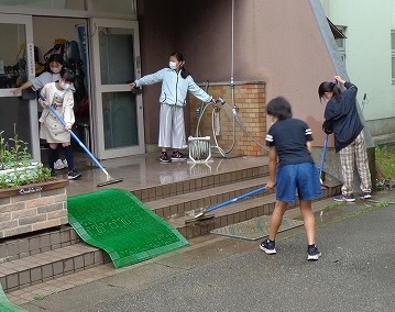 子供たちが元気に挨拶して登校してきました。すると、6年生の女子が一人、また一人と進んで児童玄関の掃除を始めました。今週は雨混じりの日が続いていました。下級生が農園からもどってくる際に児童玄関を泥で汚してしまったのでしょうか。けれど、6年生の子達は、別に文句を言うわけでもなく、気持ちよく掃除をしてくれました。長岡っ子のすてきなところだなと感心しました。