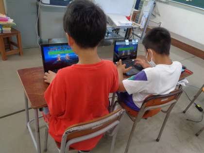 タイピング対戦で切磋琢磨して技能を伸ばしています。